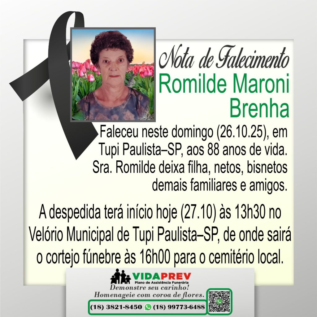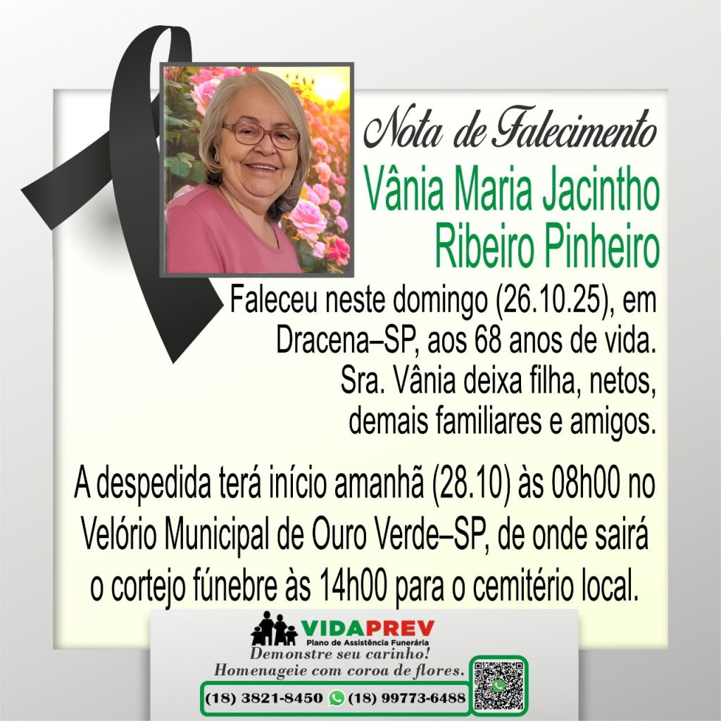 Faleceram Vânia Maria Jacintho Ribeiro Pinheiro e Romilde Maroni Brenha Por Valdomiro Nunes - outubro 27, 2025 75