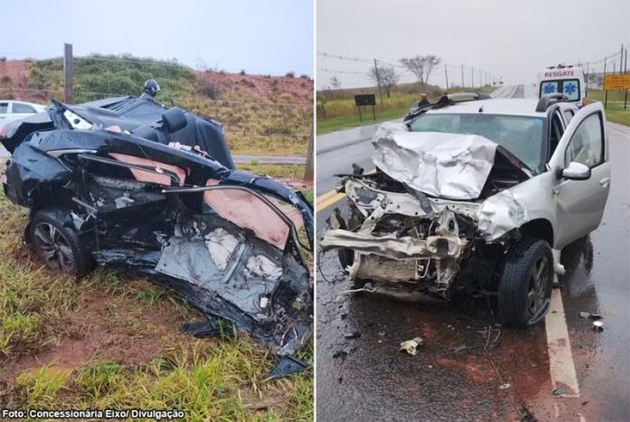 Com impacto da batida, um dos veículos se partiu ao meio. O motorista, um homem de 31 anos, estava sozinho no carro e foi socorrido com ferimentos leves. Ainda de acordo com informações chovia no momento do acidente e um dos carros teria aquaplanado.