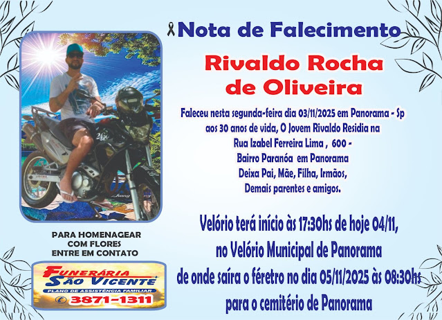 Morre aos 30 anos de vida, vítima de acidente, Rivaldo Rocha de Oliveira Por Valdomiro Nunes - novembro 4, 2025 30