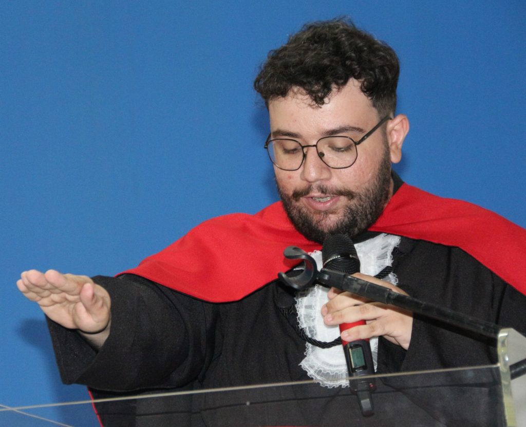 O formando João Pedro Berlandi Brito (Direito) conduziu o juramento de todos os concluintes dos cursos.