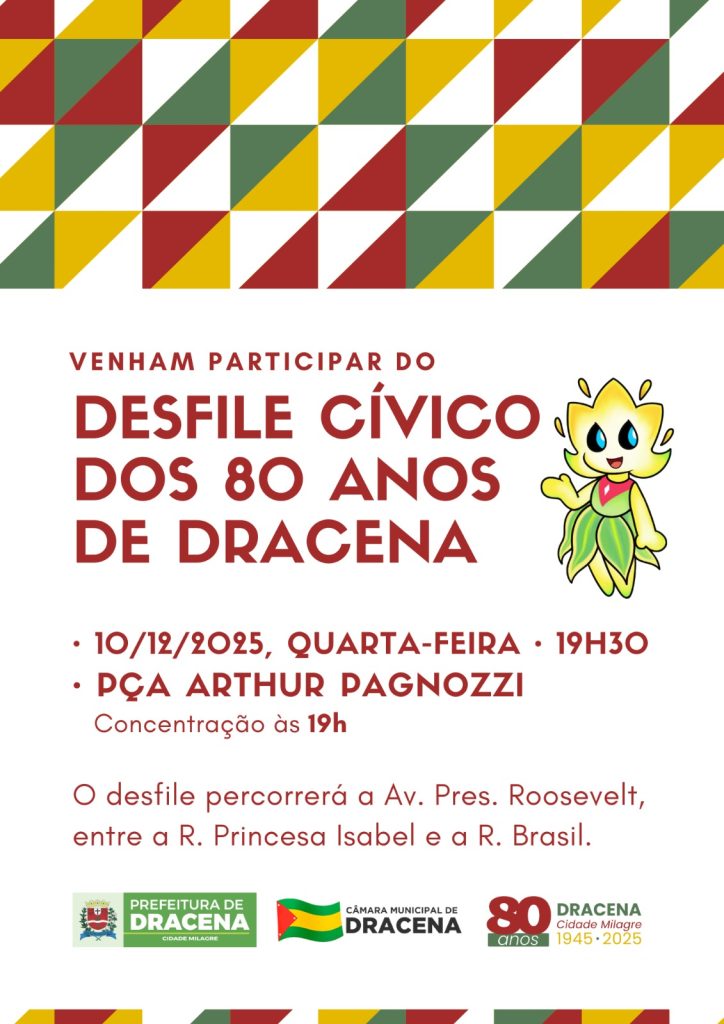 Desfile Cívico dos 80 anos de Dracena nesta quarta-feira, às 19horas. Veja detalhes Por Valdomiro Nunes - dezembro 10, 2025 29