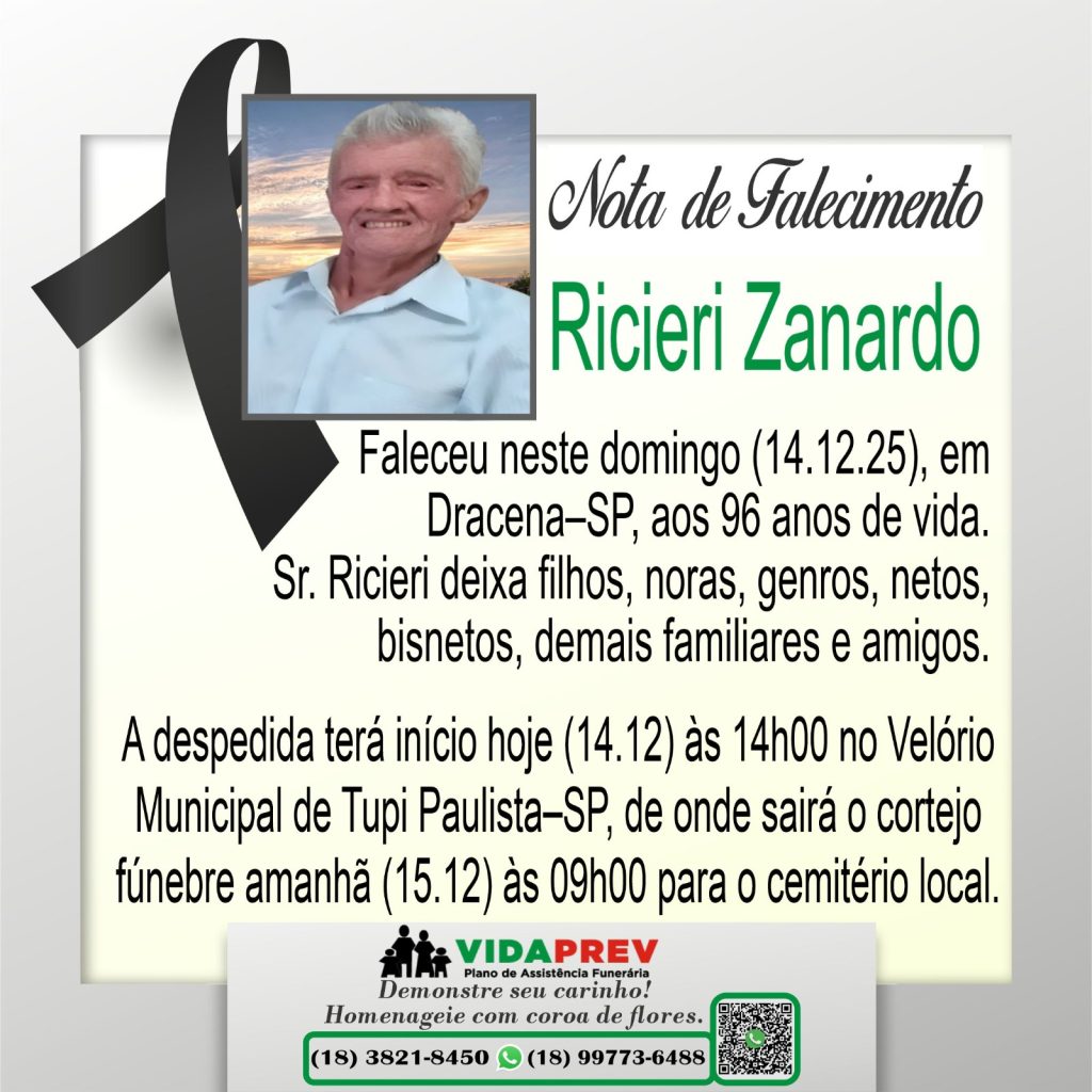 Faleceram Braulino da Silva, Reinaldo Otávio da Silva. Abília Oliveira da Silva e Ricieri Zanardo Por Valdomiro Nunes - dezembro 15, 2025 53