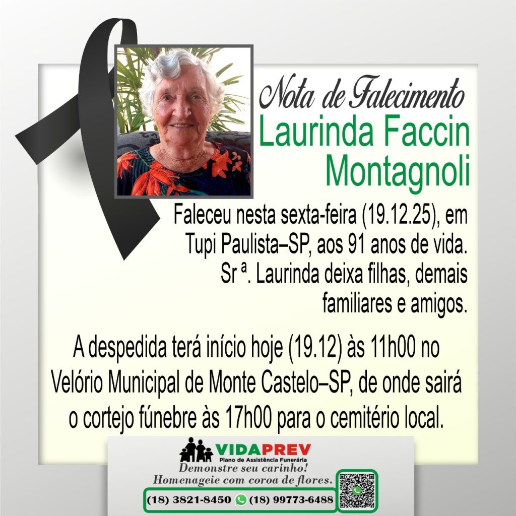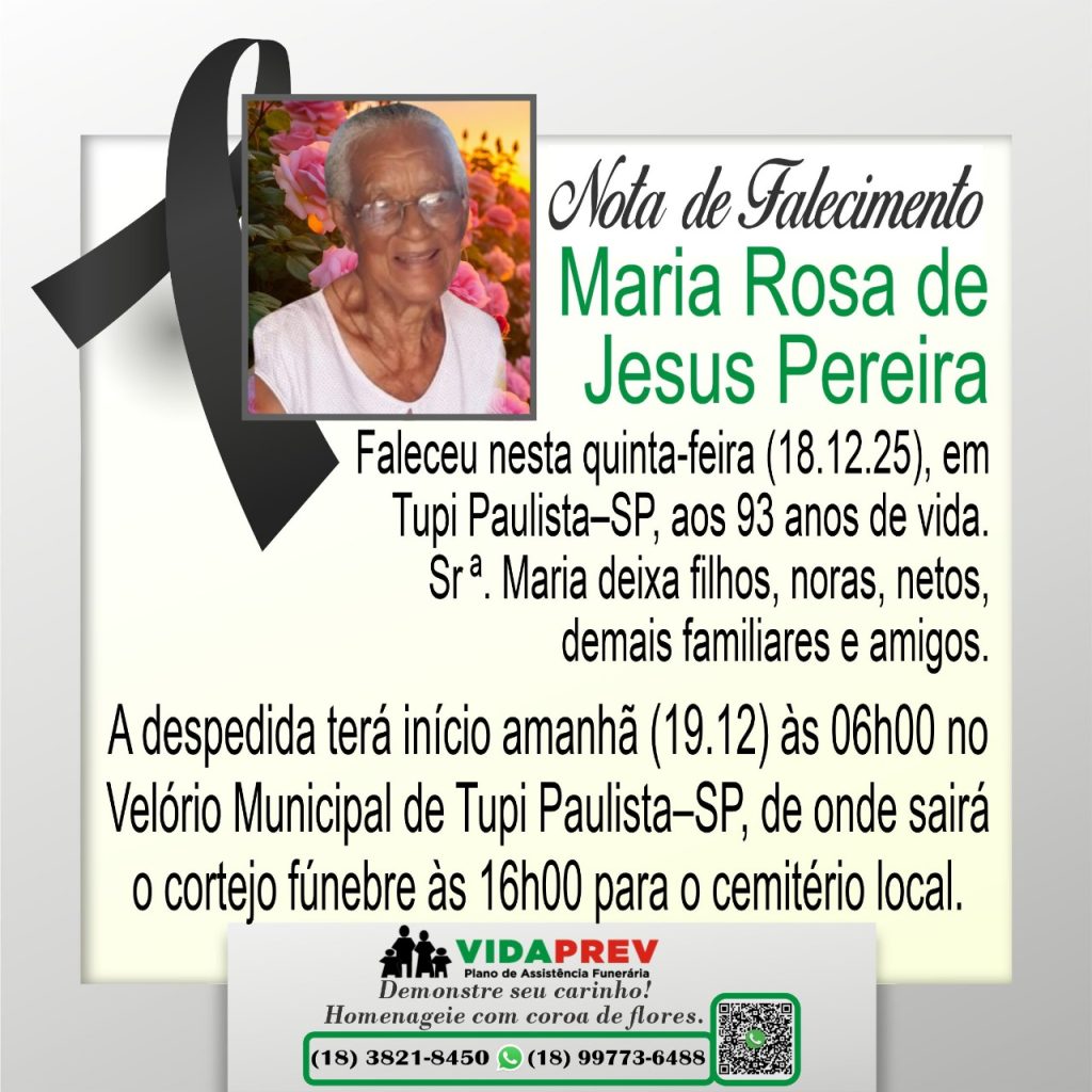 Faleceram Maria Rosa de Jesus Pereira, Antônia Diolinda da Conceição, Laurinda Faccin Montagnoli e Irene da Silva Rodrigues Por Valdomiro Nunes - dezembro 19, 2025 14