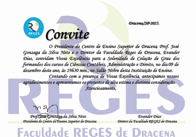 Hoje, solenidade de colação de grau, formandos de Ciências Contábeis, Administração e Direito REGES Por Valdomiro Nunes - dezembro 9, 2025 46