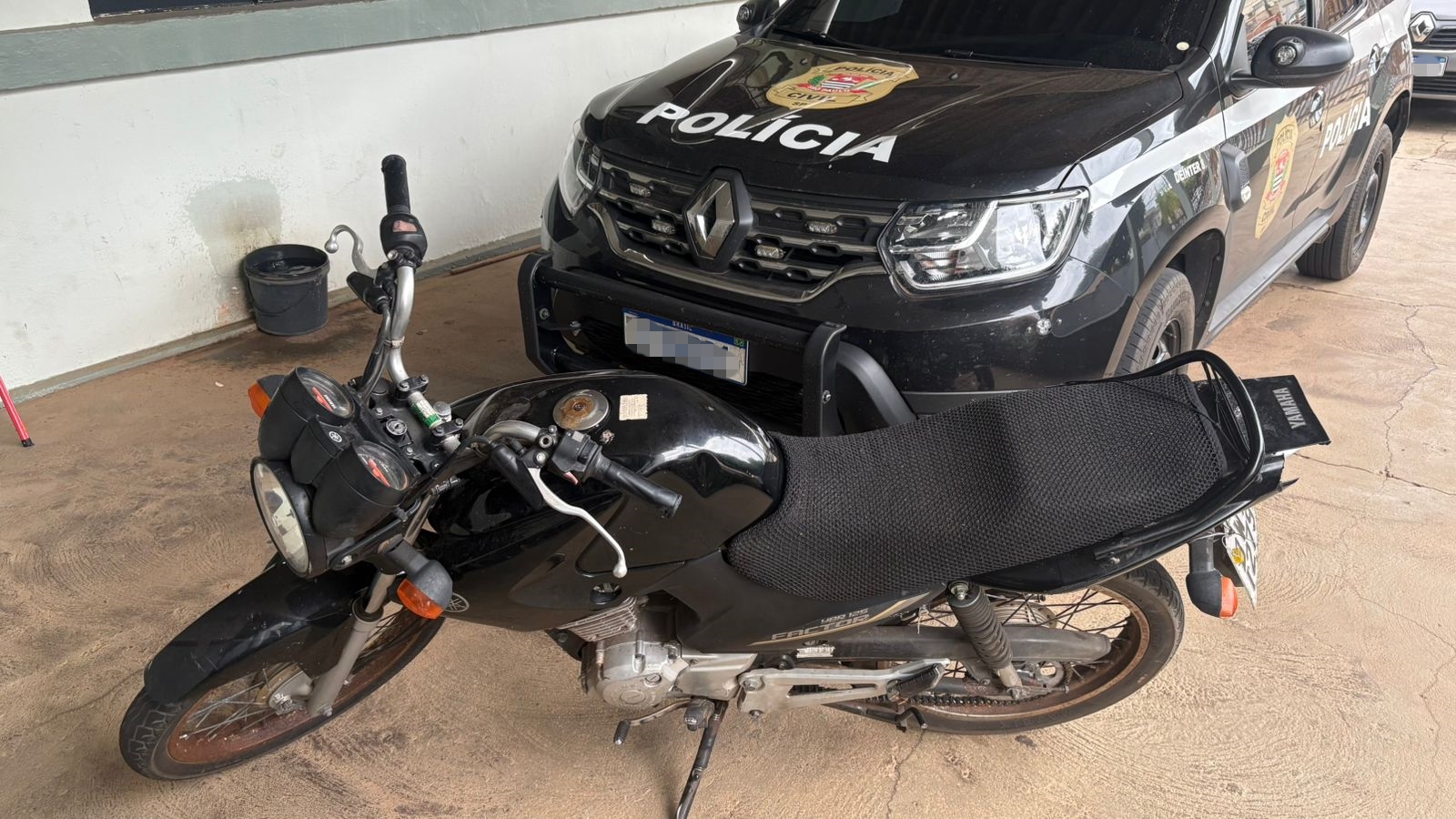 A Polícia Civil do Estado de São Paulo (PCSP), por intermédio da Delegacia de Polícia de Junqueirópolis, recuperou nesta segunda-feira (8) uma motocicleta furtada na madrugada da última sexta-feira (6), em frente a uma residência no bairro Jardim Alvorada, em Dracena. A vítima, uma mulher de 54 anos, relatou que havia estacionado o veículo em frente ao imóvel e que o furto foi percebido quando seu filho tentou utilizá-lo.