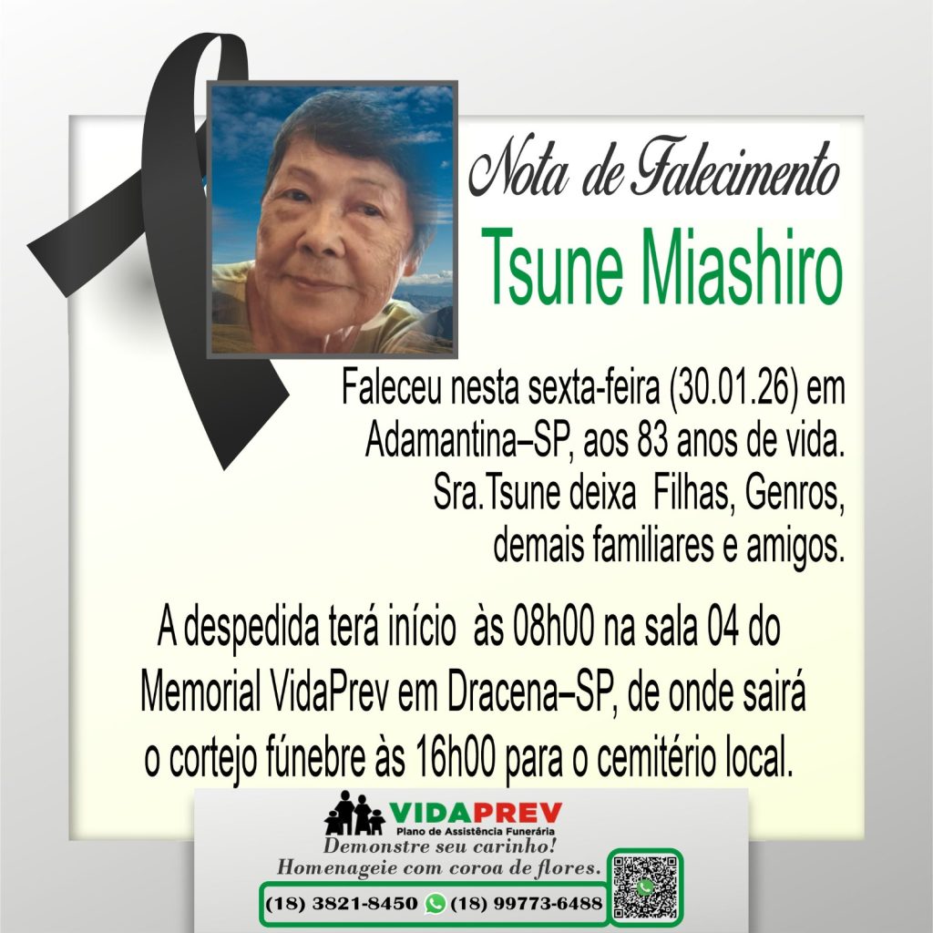 Faleceram Celso Pereira Alves, “Bolinha”, Josefina Batista e Tsune Miyashiro Por Valdomiro Nunes - janeiro 31, 2026 74 Tsu