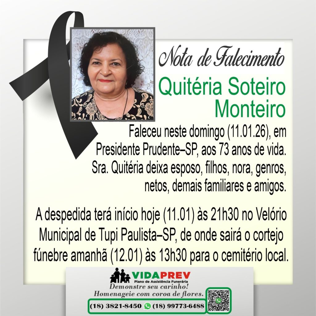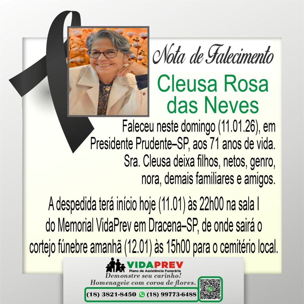 Faleceram Cleusa Rosa das Neves e Quitéria Soteiro Monteiro Por Valdomiro Nunes - janeiro 12, 2026 87