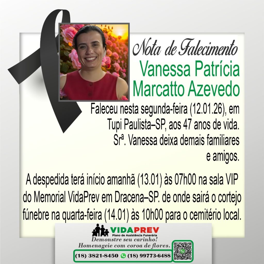 Faleceram Cleusa Rosa das Neves, Elizabete Casagrande Duarte e Vanessa Patrícia Marcatto Azevedo Por Valdomiro Nunes - janeiro 13, 2026 69