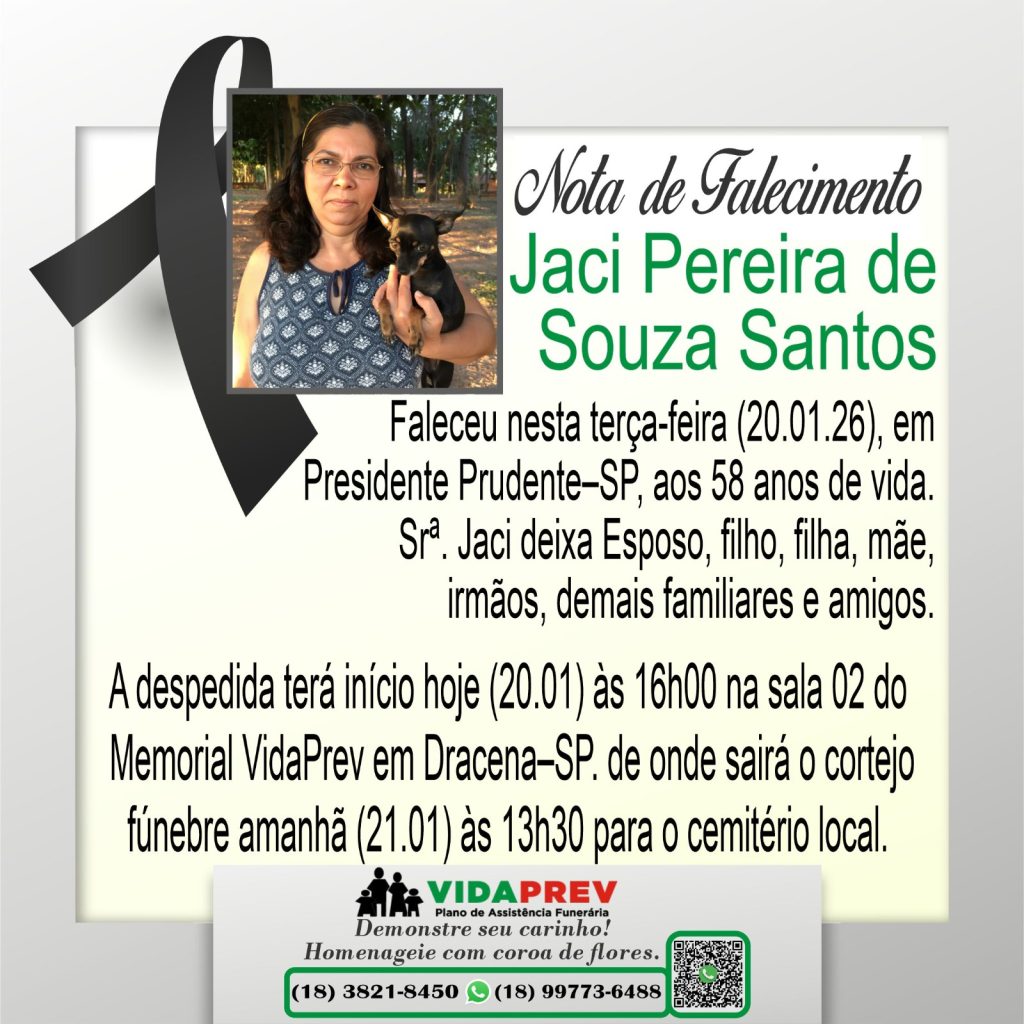 Faleceu em Dracena, aos 58 anos, Jaci Pereira de Souza Santos Por Valdomiro Nunes - janeiro 20, 2026 36