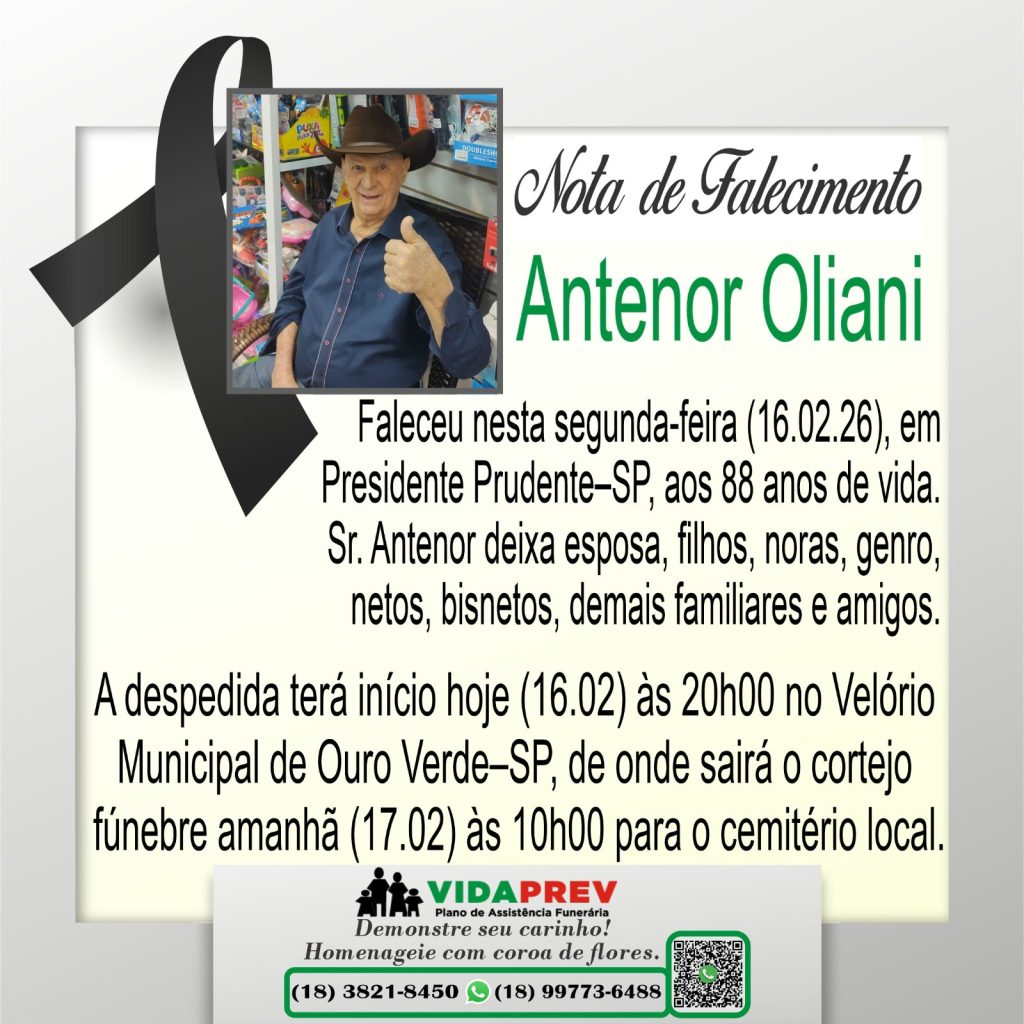 Faleceram Antenor Oliani, Alieta Gonçalo da Silva e José Luiz Lopes Caparro Por Valdomiro Nunes - fevereiro 17, 2026 15