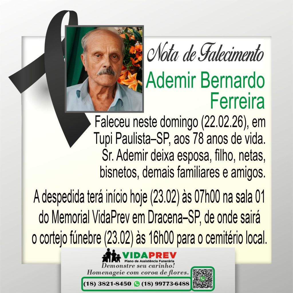 Faleceram Joaquim Antônio de Lima, Ademir Bernardo Ferreira e Maria Fernandes Costa Por Valdomiro Nunes - fevereiro 23, 2026 18