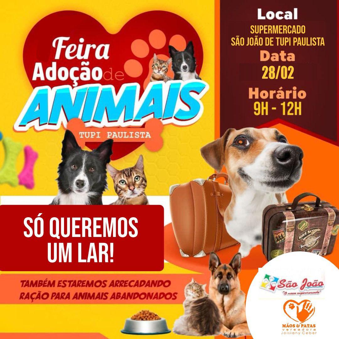 Feira Adoção de Animais em Tupi Paulista Por Valdomiro Nunes - fevereiro 28, 2026 32 Neste dia 28.02, acontece em Tupi Paulista a Feira Adoção de Animais. Confira