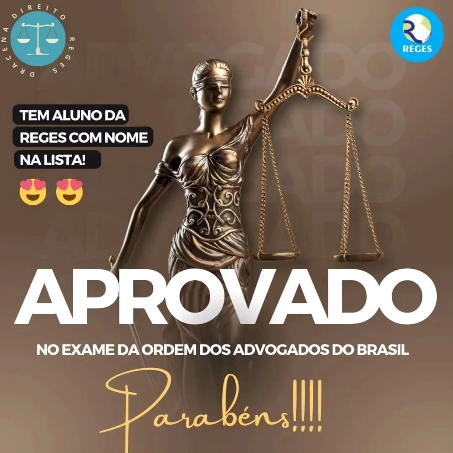 A Coordenação do Curso de Direito da Faculdade REGES de Dracena parabeniza todos os aprovados no 45° Exame da Ordem, em especial os nossos alunos e ex-alunos: