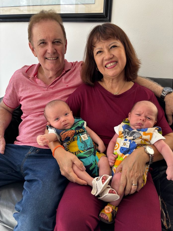 Adel e Telma Tamaoki Figueiredo com os netos fofuchos.