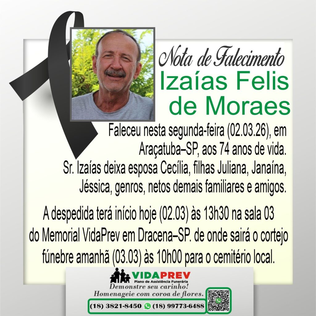 Faleceu Izaías Felis de Moraes