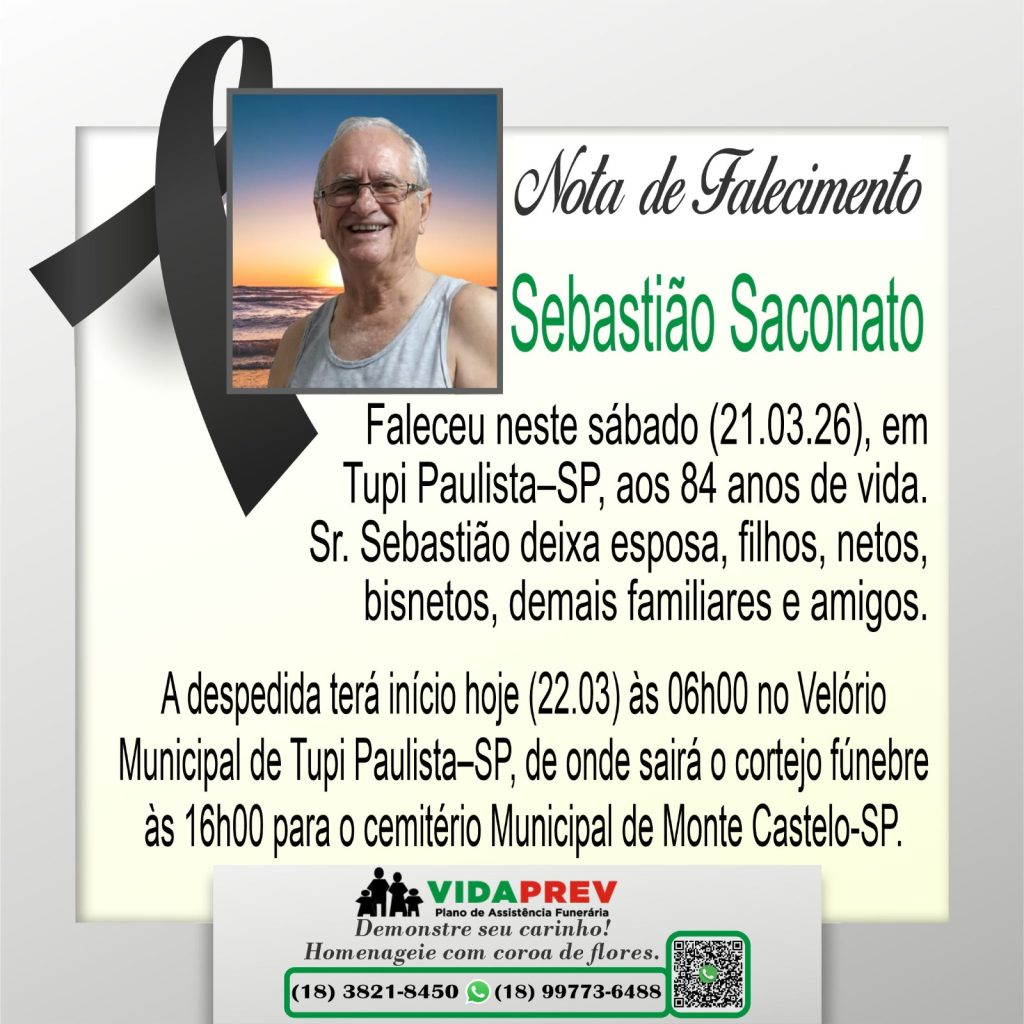 Faleceu o senhor Sebastião Saconato