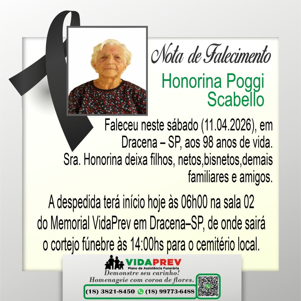 Faleceram Honorina Poggi Scabello e Oscar Kenji Hatakeyama