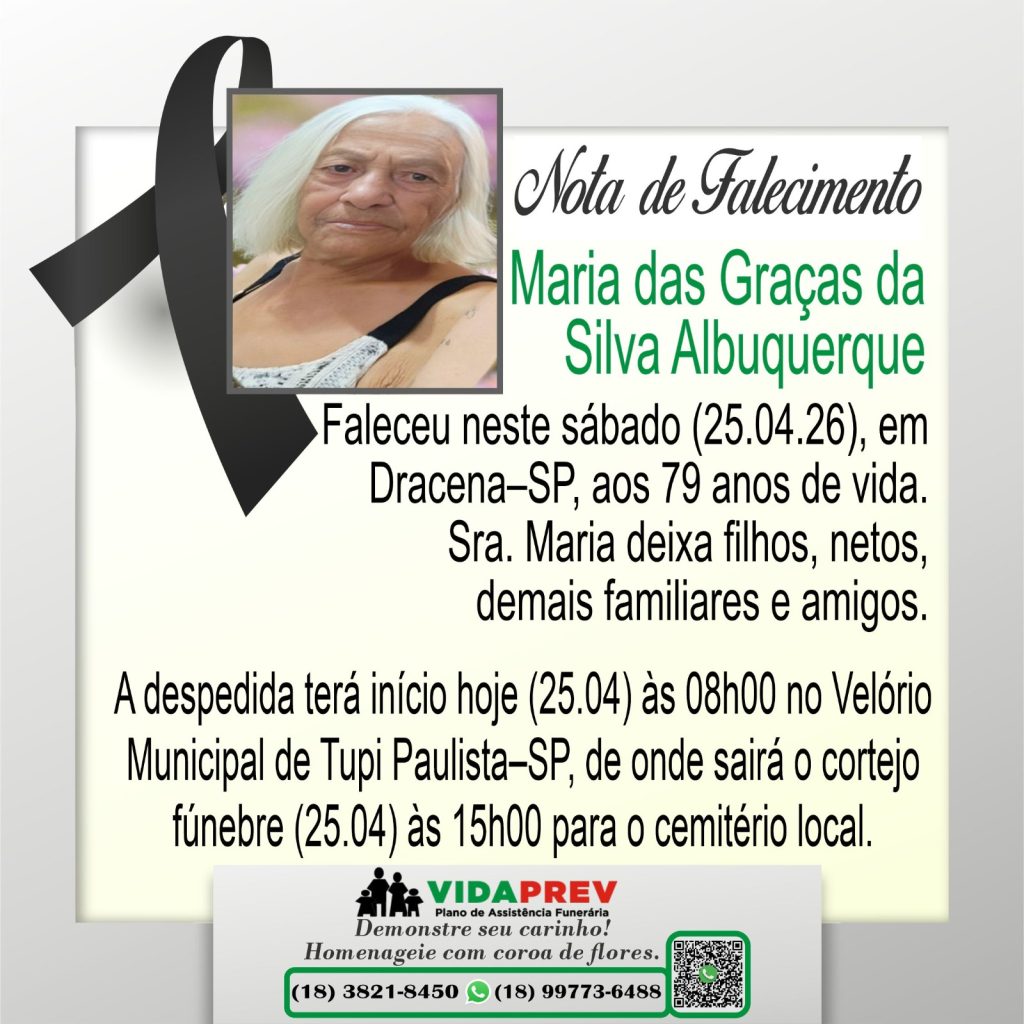 Faleceram Maria das Graças da Silva Albuquerque e Manoel Matias da Silva Por Valdomiro Nunes - abril 25, 2026 3
