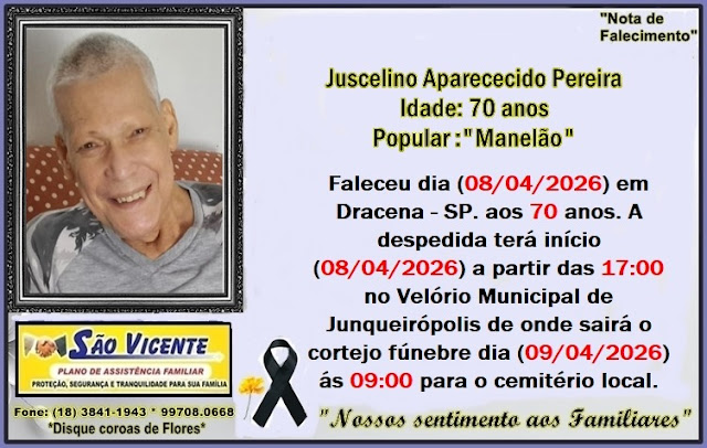Faleceu Juscelino Aparecido Pereira, popular “Manelão”
