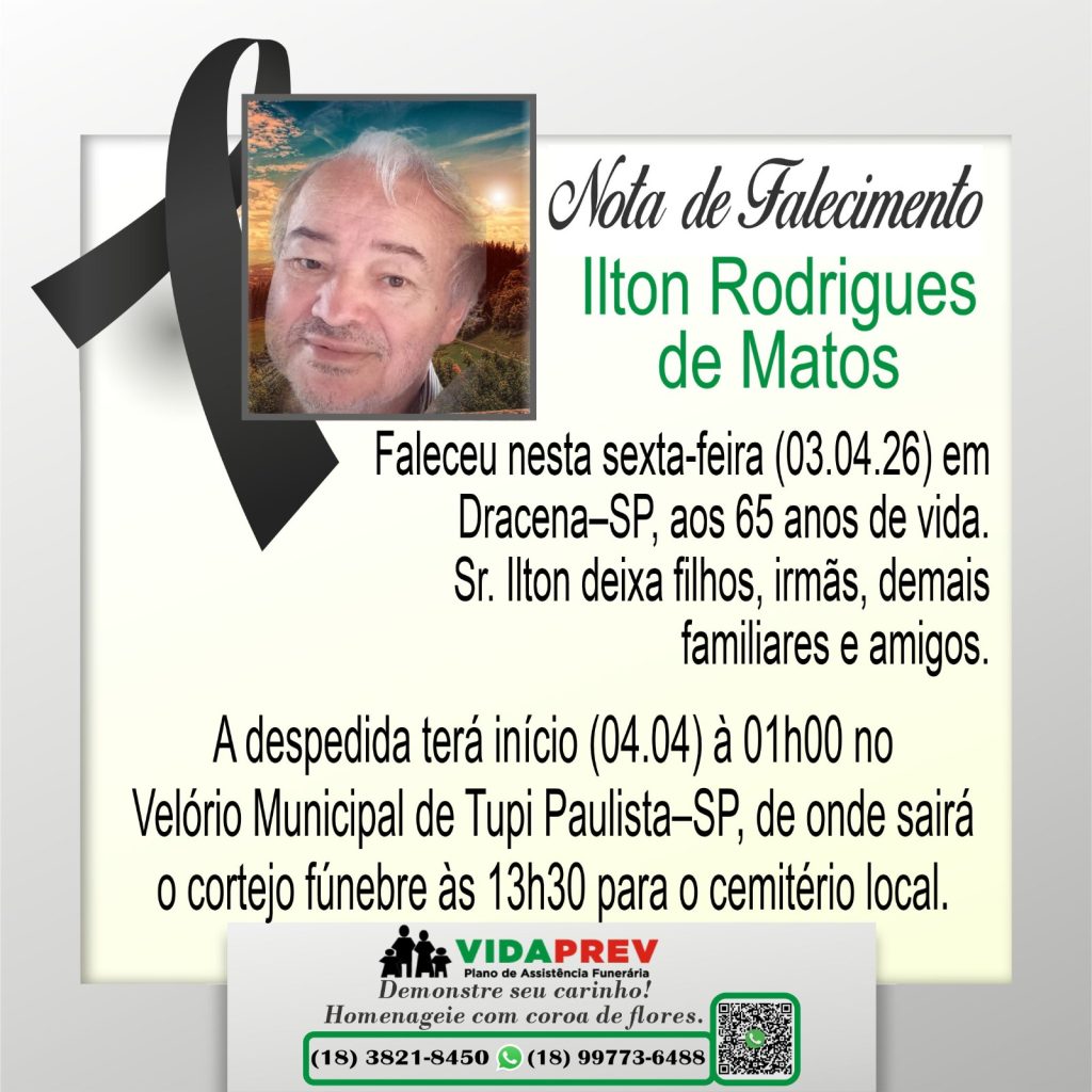 Falecimentos em Dracena, Ouro Verde, Tupi Paulista e Panorama. Veja nomes e fotos Por Valdomiro Nunes - abril 4, 2026 24
