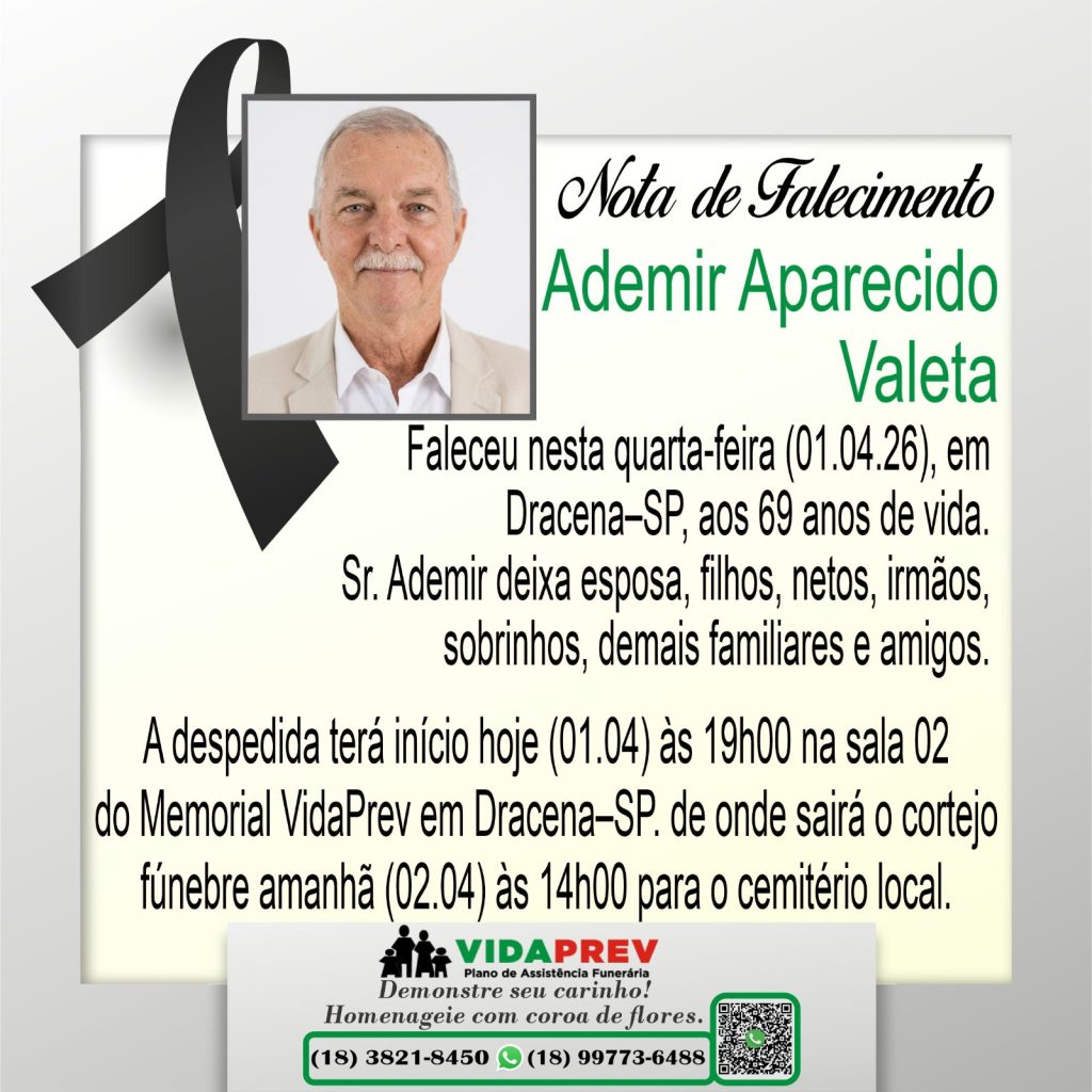 Morre em Dracena aos 69 anos, Ademir Aparecido Valeta